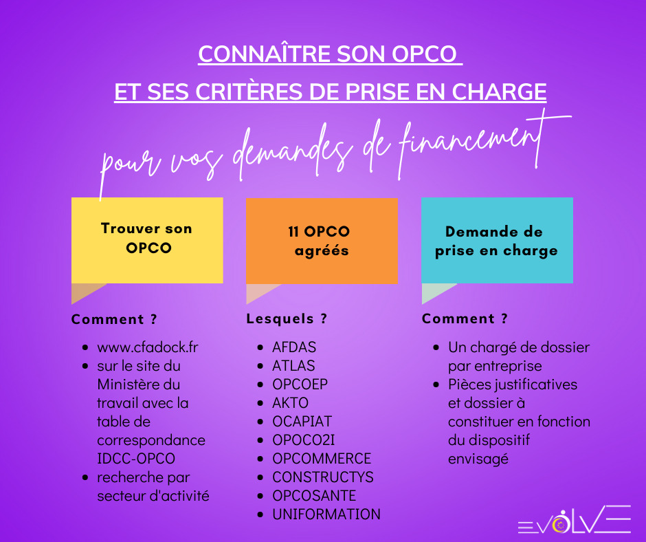 Les OPCOs (Opérateurs de Compétences) assurent le financement de la formation professionnelle pour les actifs salariés de seize ans et plus.