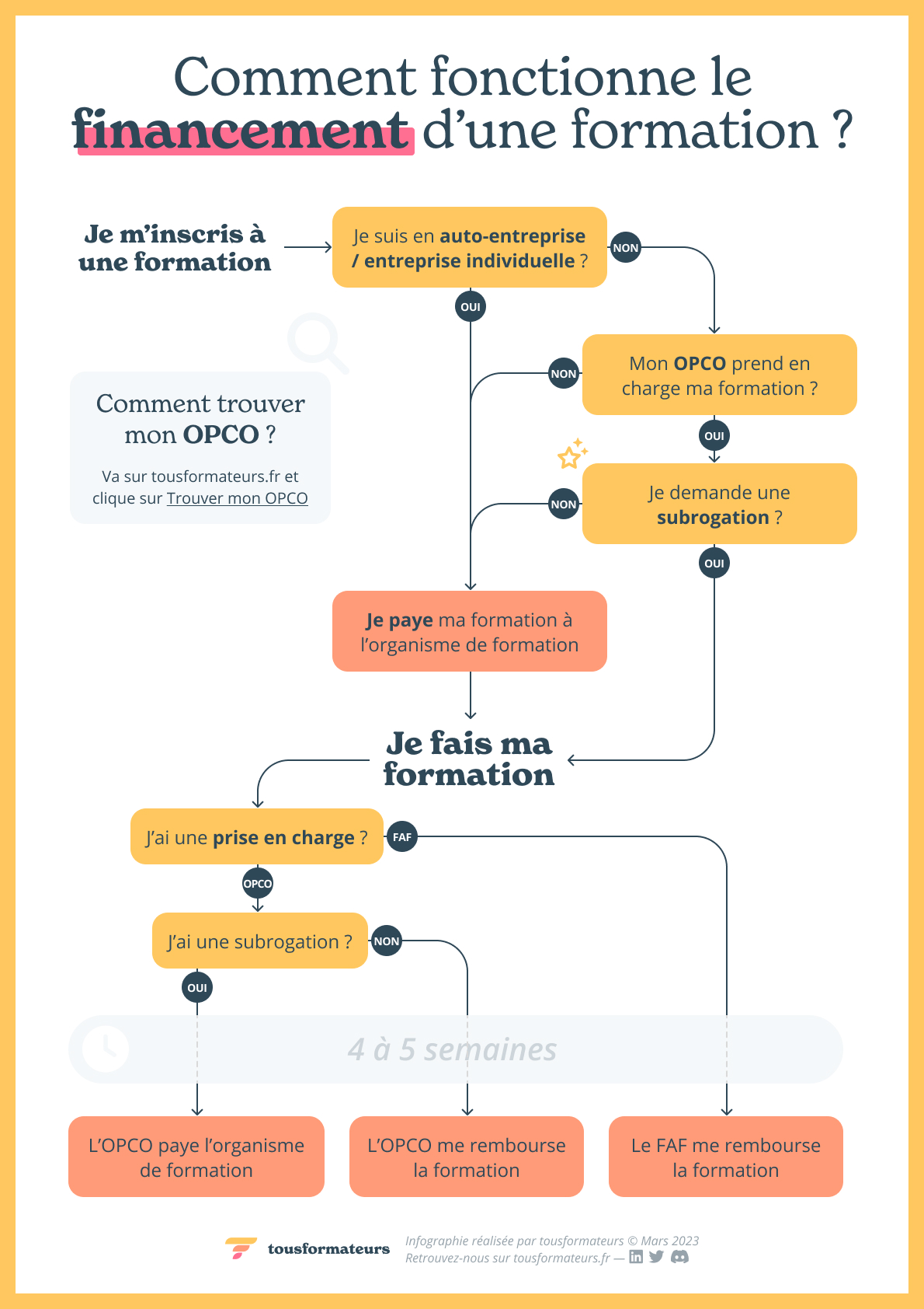Pour profiter d'une prise en charge par ces derniers, l'entreprise du salarié doit être affiliée à l'OPCO correspondant à son secteur d'activité principal.